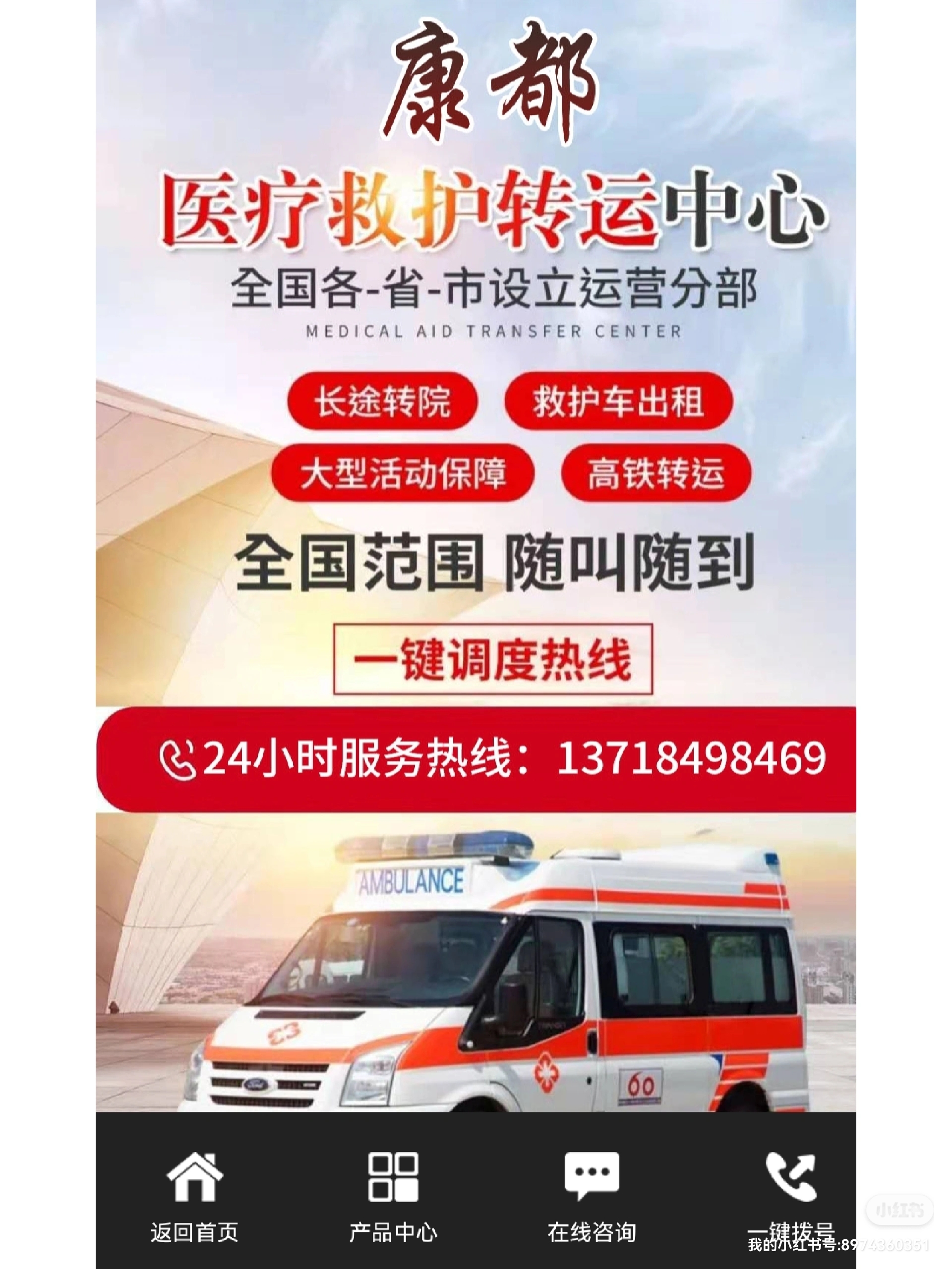 莒县120救护车长途转运跟大家聊聊如何办理救护车牌照:1.根据许可证税第七条的规定:卫生机关和公共组织设立的医院、具有固定特殊设备和特殊标志的交通工具,如救护车、诊疗车、洒水车、水肥车、垃圾车等,免征许可证税/燃料税;前一项免征许可证税的交通工具,使用前应办理免征手续!2.申请人应准备件/申请机关单位:一、申请设立。(一)民营救护车机构设立许可申请表。(二)设置计画书。下列事项应按规定说明:1.业